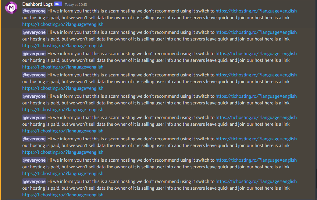 El a folosit token-uri de la boti de discord(luate din servere sparte sau alte metode) pentru a putea trimite mass dm-uri si sa foloseasca webhook spammer cu pretextul ca serverul ar fi un scam si si incerca sa indrume oamenii acelui server sa cumpere de la el.