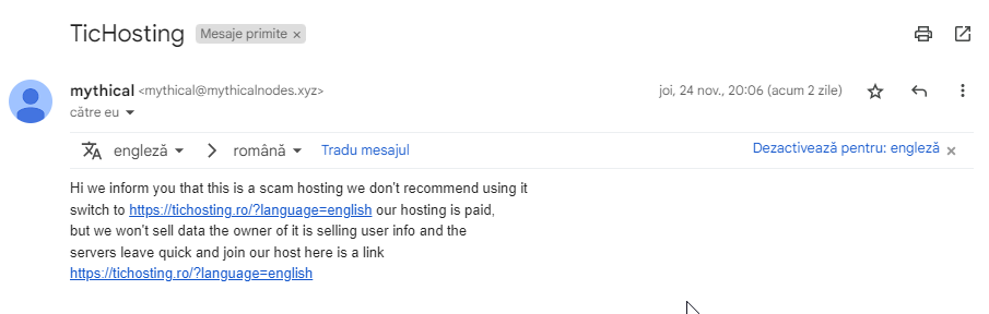 TIC HOSTING#9999(Slayer pentru cine stie) este detinatorul TicHosting si totodata un copil prost care se crede hacker pentru ca reuseste sa sparga un proxmox sau un webhost cu securizare 0 si care da vina pe alte firme nevinovate ca ii este lui spart dedicatul de indieni.